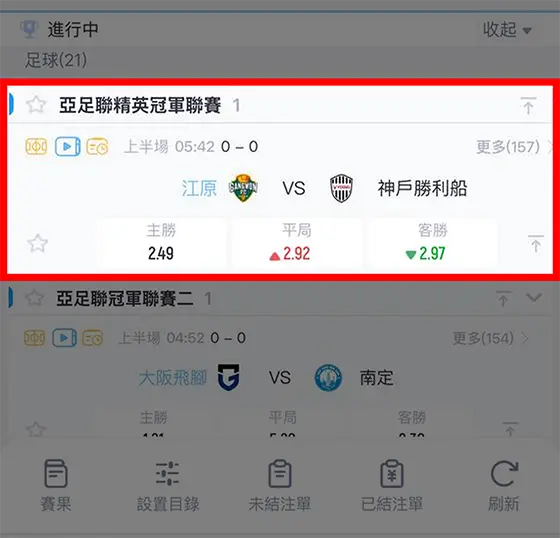 選擇想看的直播賽事